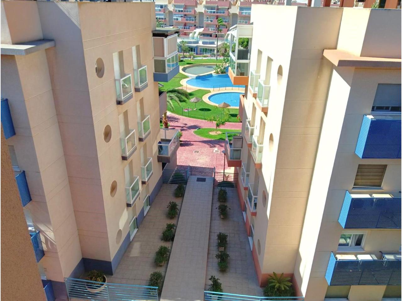 El residencial ofrece piscina, gimnasio, sauna, zonas verdes, parque infantil y chiringuito, todo a pocos metros de la playa y el paseo marítimo.