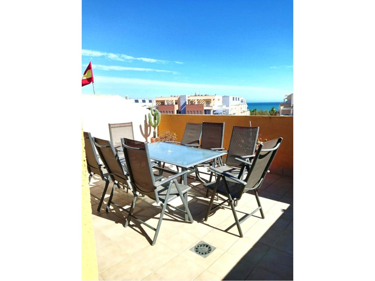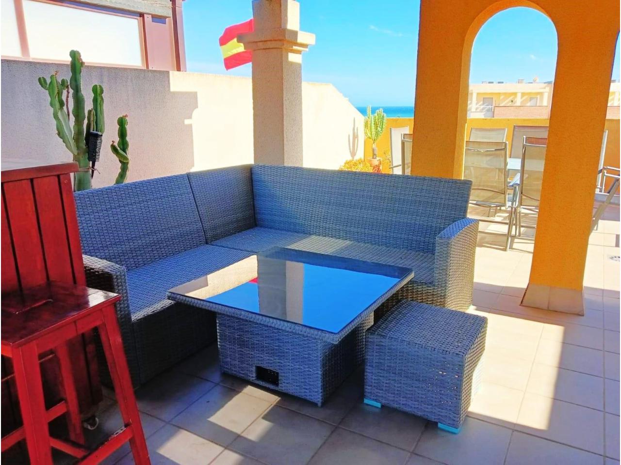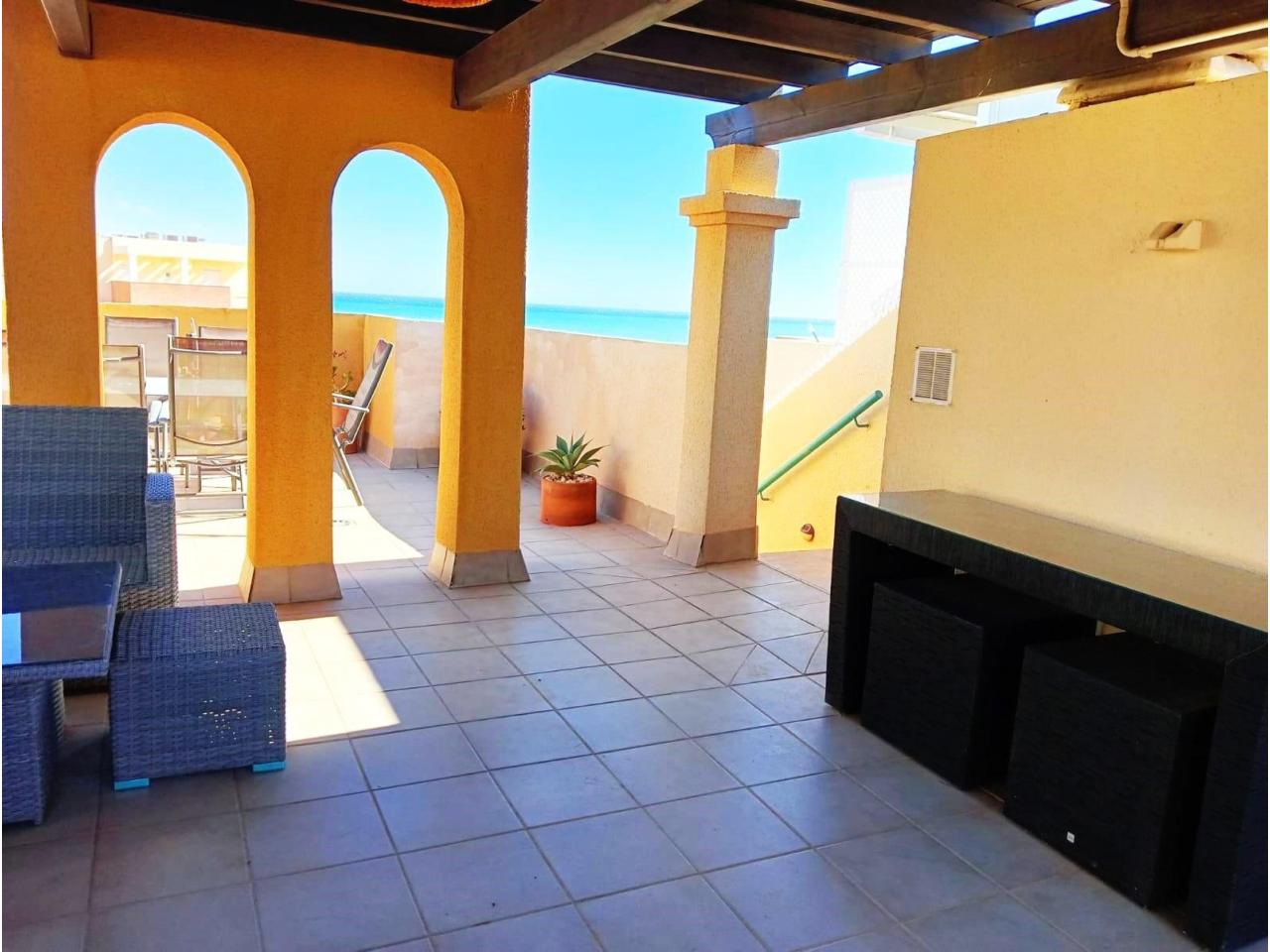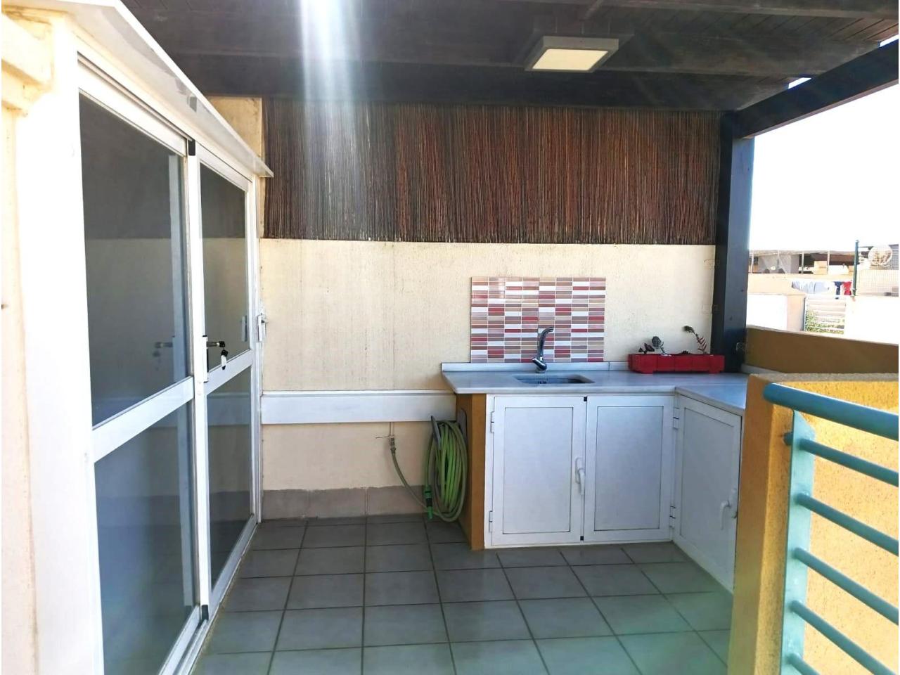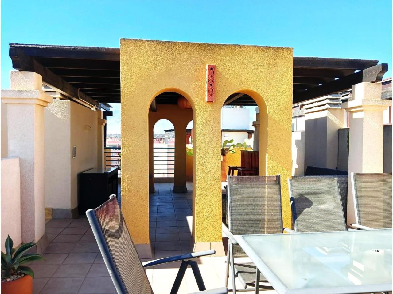 Desde la terraza principal, una escalera da acceso a un amplio solárium totalmente equipado con zona de barbacoa, barra, pérgola y mobiliario, ideal para relajarte o compartir momentos con familia y amigos.